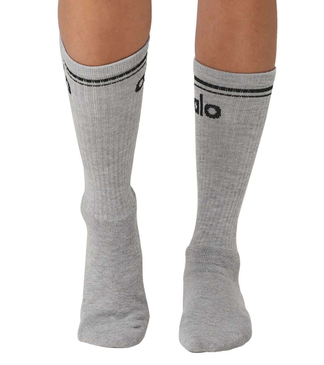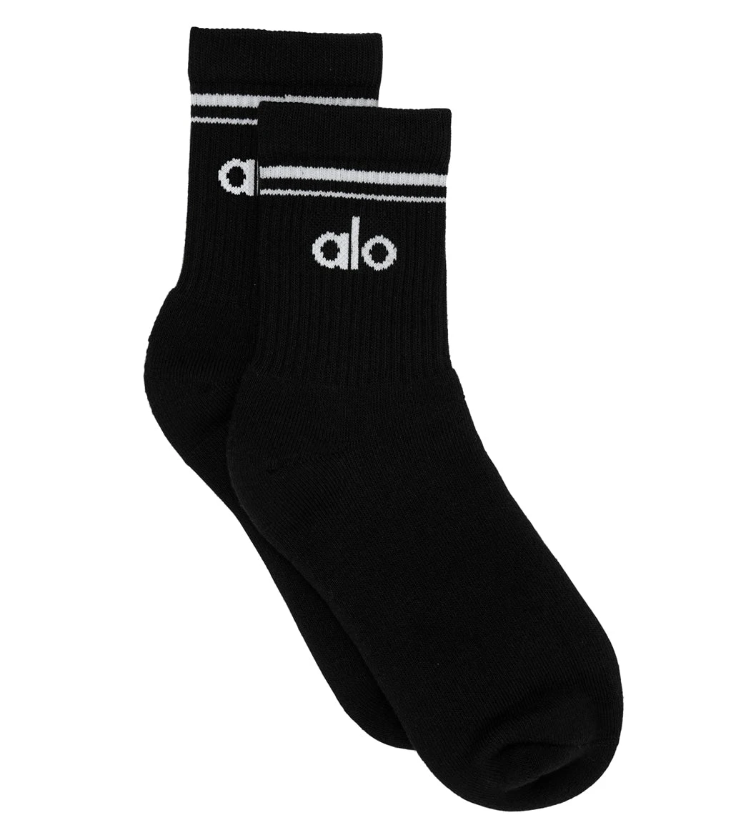 Instant classic. The Alo Unisex Throwback Sock has all the features of a fave: a super-soft feel, comfy cushioning and classic stripe detail. Wear it tall or scrunched with leggings or shorts and your go-to sneakers.