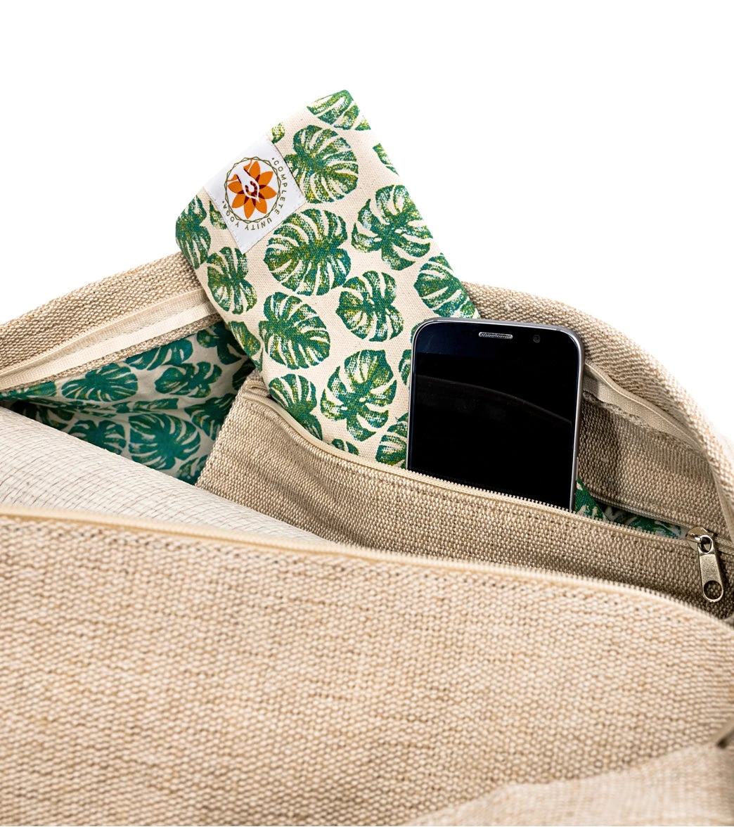 Tote your mat around town with the Complete Unity Mindful Jungle Yoga Mat Bag, made from natural fibers and designed with convenient details.