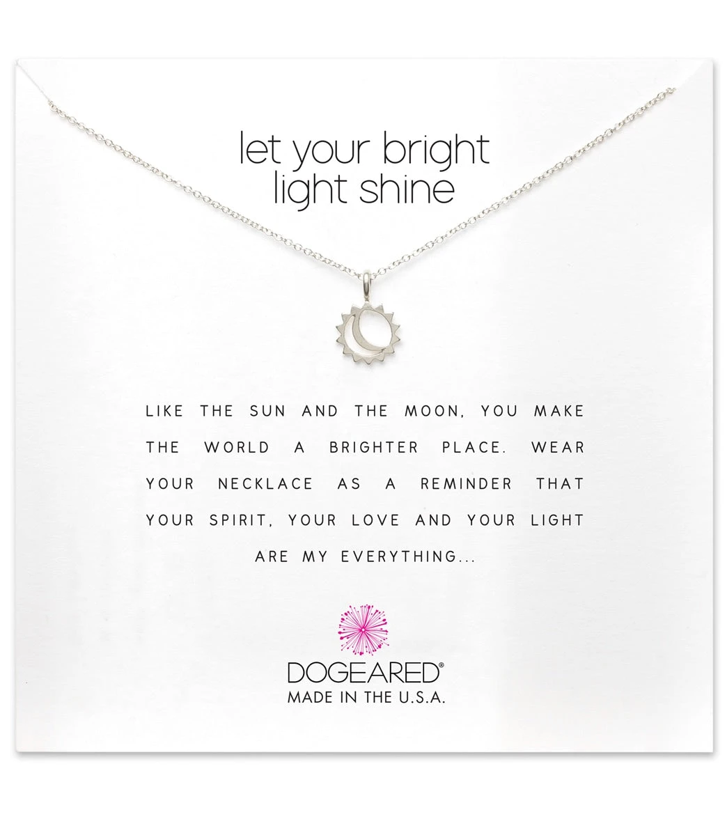 Showcase your true self while wearing the Dogeared Let Your Bright Light Shine, Sun and Moon Necklace.