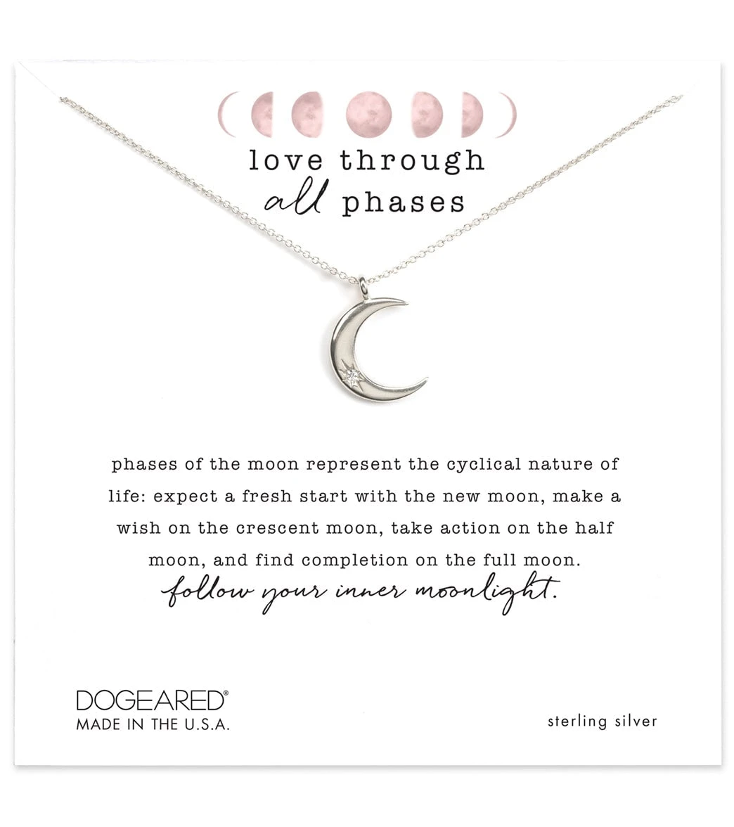 Showcase your celestial aesthetic with the Dogeared Love Through All Phases Moon Necklace.