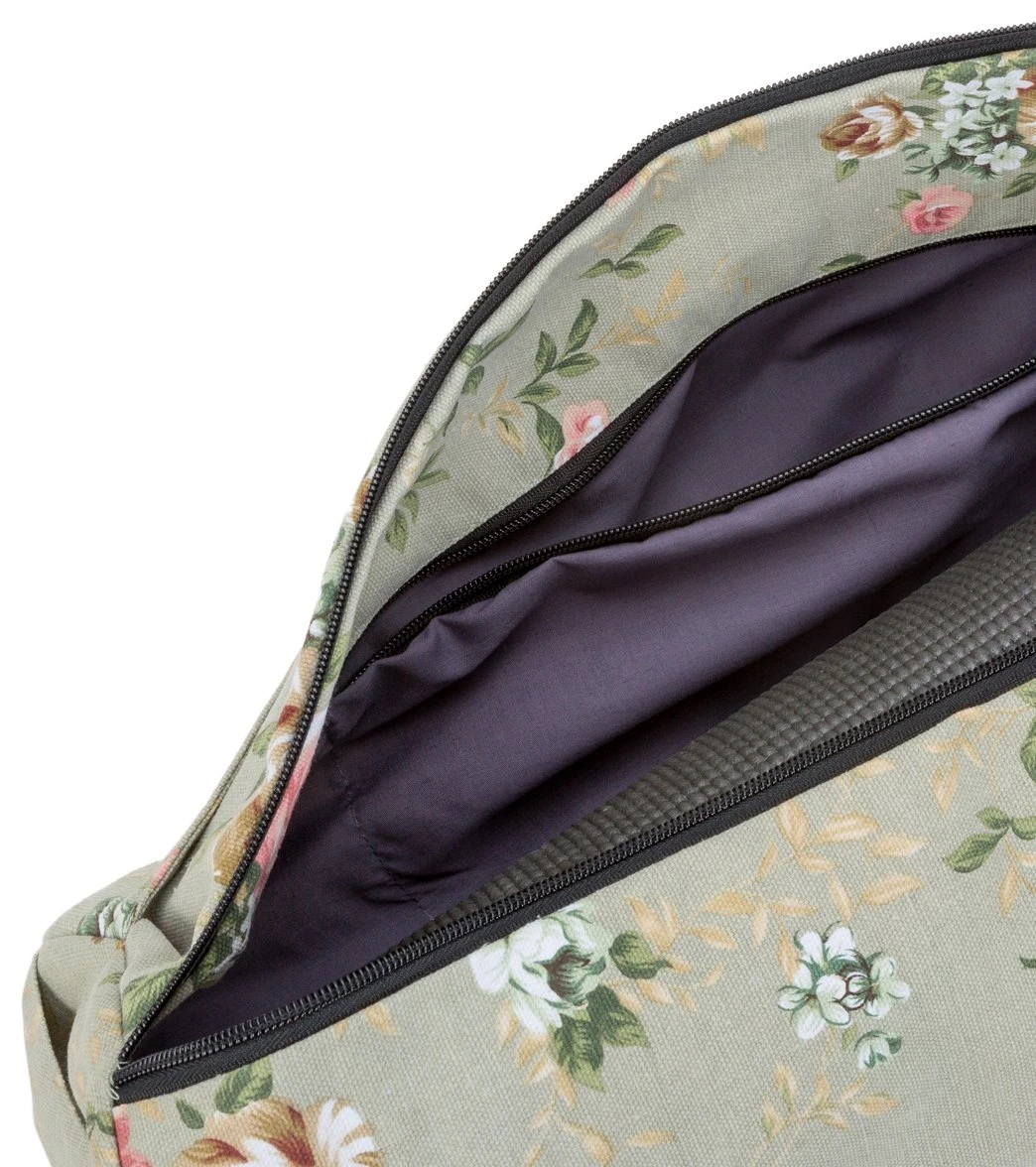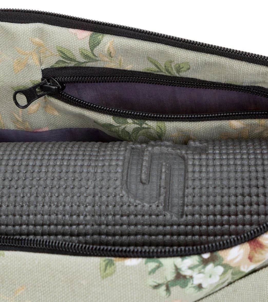 The Everyday Yoga Mat Bag With Inner Pockets takes a traditional mat bag and turns it into a beautiful extension of your studio style. This bag has grommets that help keep the contents of your bag fresh.