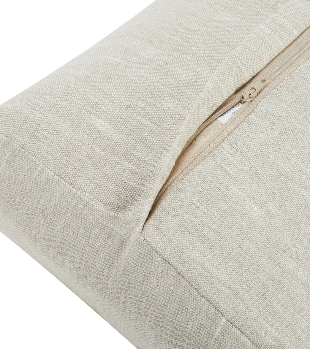 Rest and restore with the Halfmoon Linen Restorative Bolster, an essential yoga prop with a handy handle and removable cover.