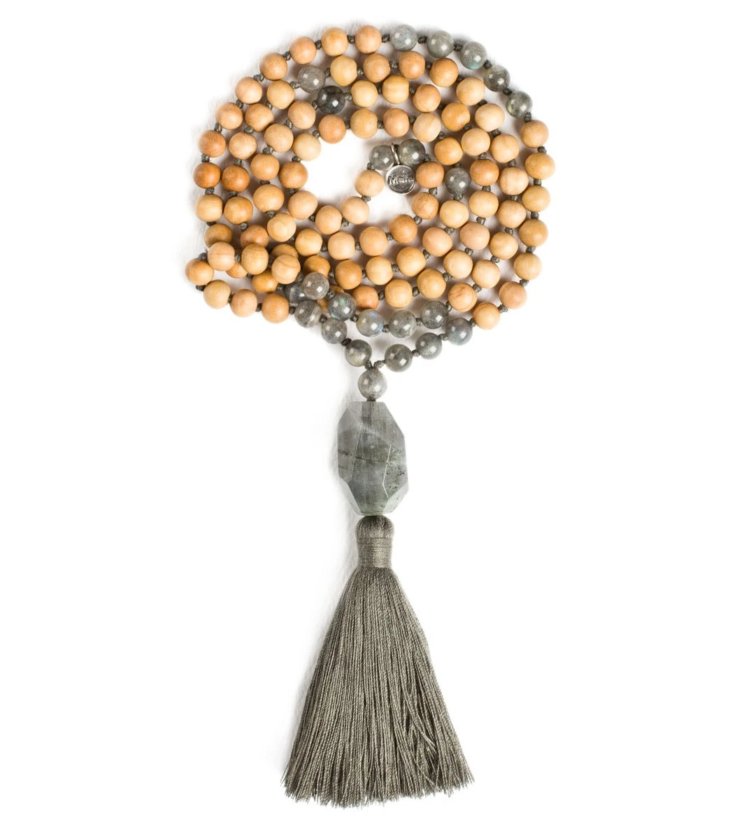 Balance the energy of your mind with the Mala Collective Balancing Energy Japa Mala Necklace. Featuring Sandalwood and Labradorite gemstones, this necklace promotes power, tranquility, and a positive mind.