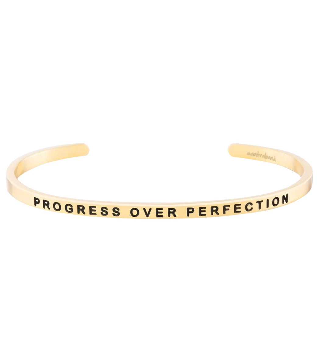 - “Progress Over Perfection”-engraved adjustable bracelet