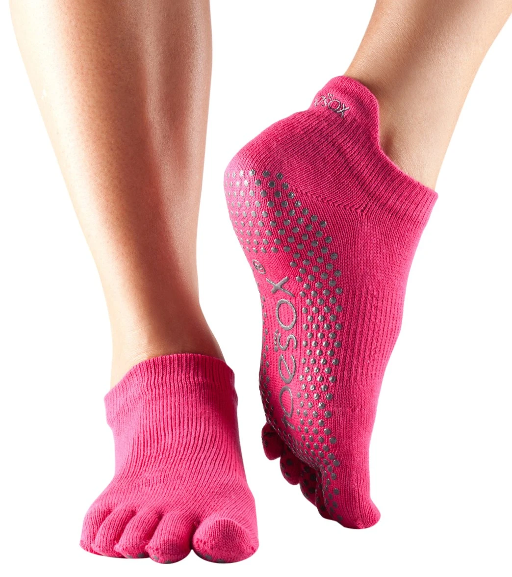Enhance your performance with these Toesox Low Rise Full-Toe Yoga Grip Socks. Its closed five-toe design allows your toes to spread naturally for a better-supported stance, while a patented non-slip sole provides secure footing as you move on and off the mat.