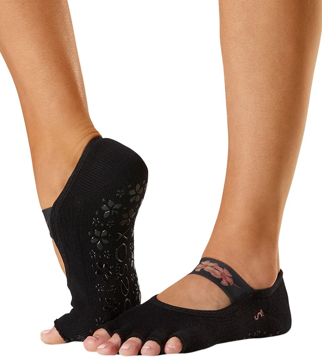 - Style Features: Ballet inspired Mia feels barely there and features ToeSox patented non slip sole for secure footing on any surface. The darling band keeps sock in place during Yoga, Pilates and Barre. Made with Organic Cotton.