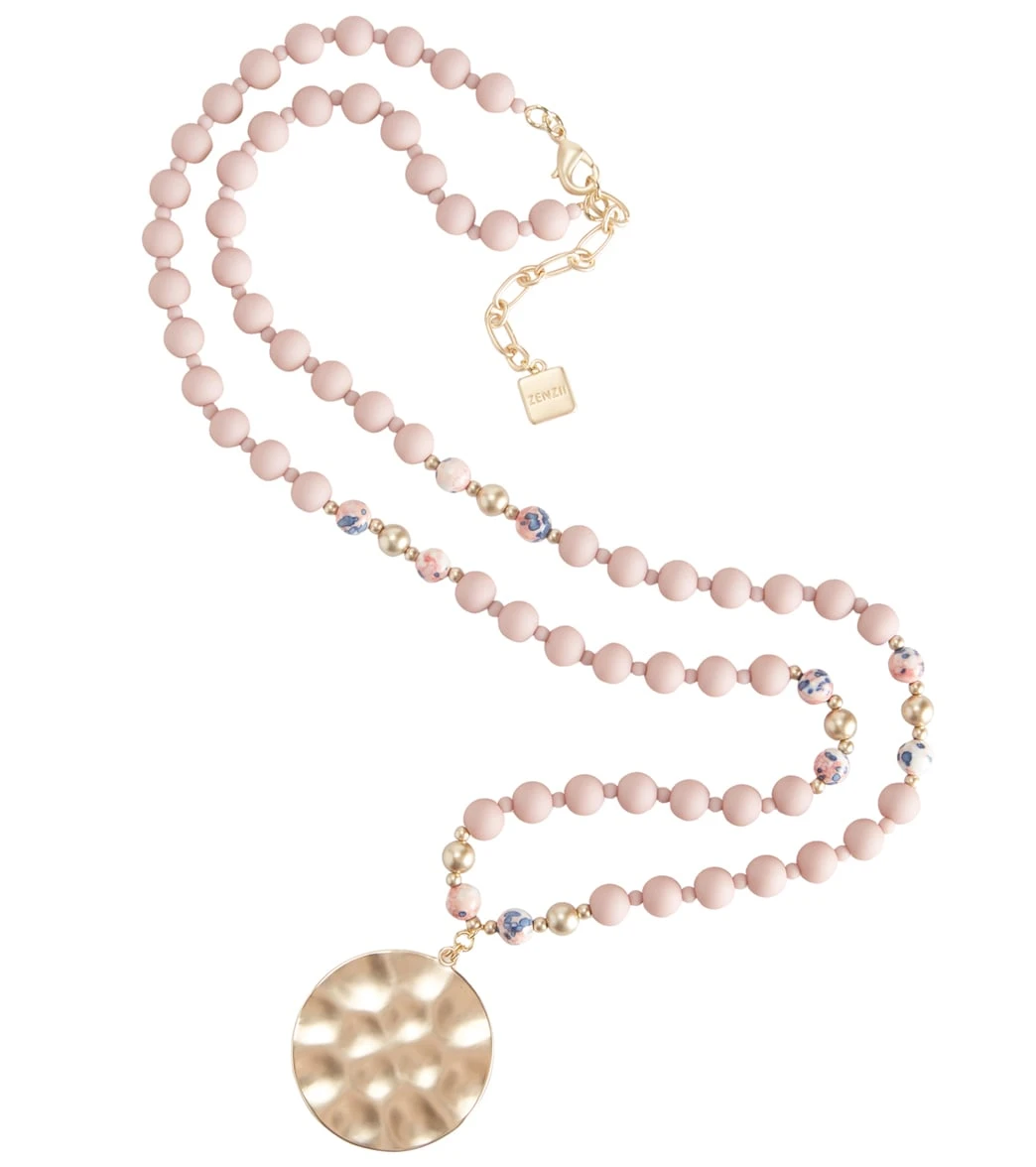 Layer on the accessories love with the Zenzii Porcelain & Resin Beaded Pendant Necklace.